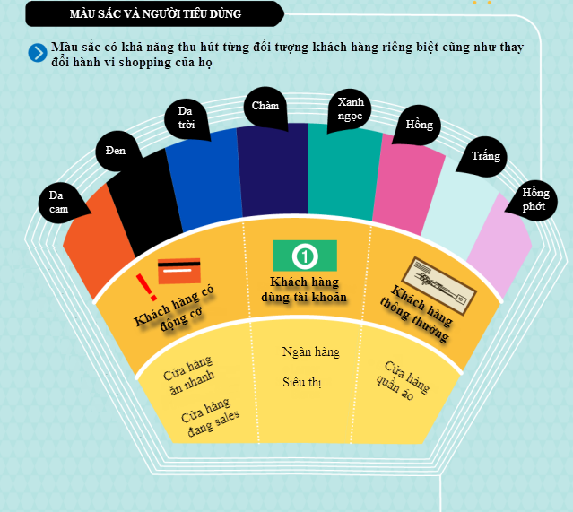 Màu sắc không chỉ ảnh hưởng đến hành vi của con người, nó còn liên quan đến các kiểu khách hàng nhất định. Các màu sắc được sử dụng trên các trang web có khả năng thu hút một dạng khách hàng nào đó nhiều hơn những người khác, ví dụ, để thu hút: